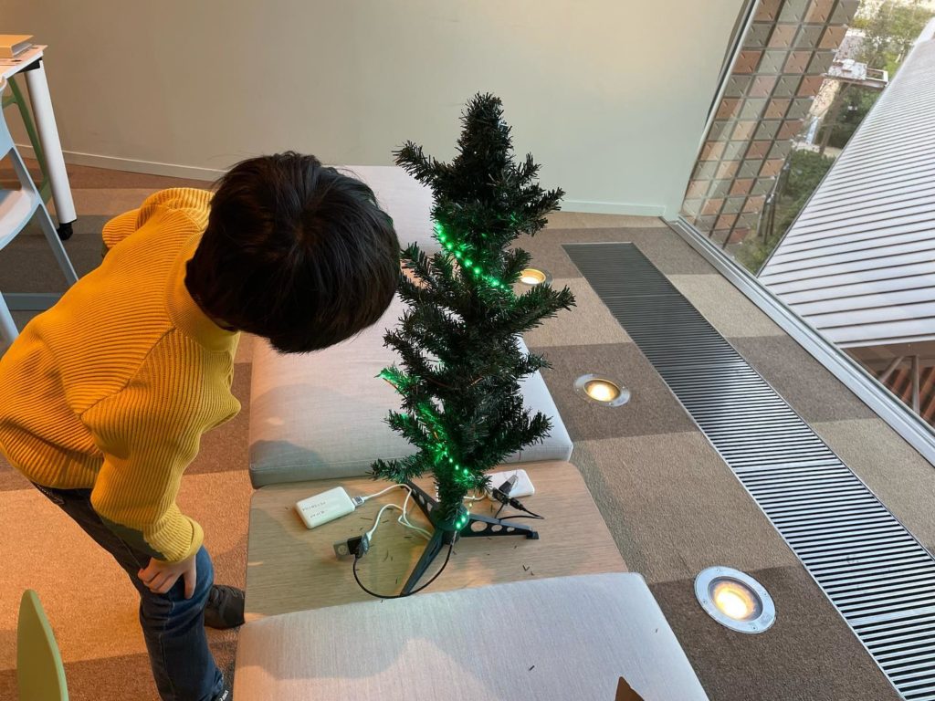 簡単なプログラムを作れるMESHブロックを使ってクリスマスツリーをつくる講座を行っています。